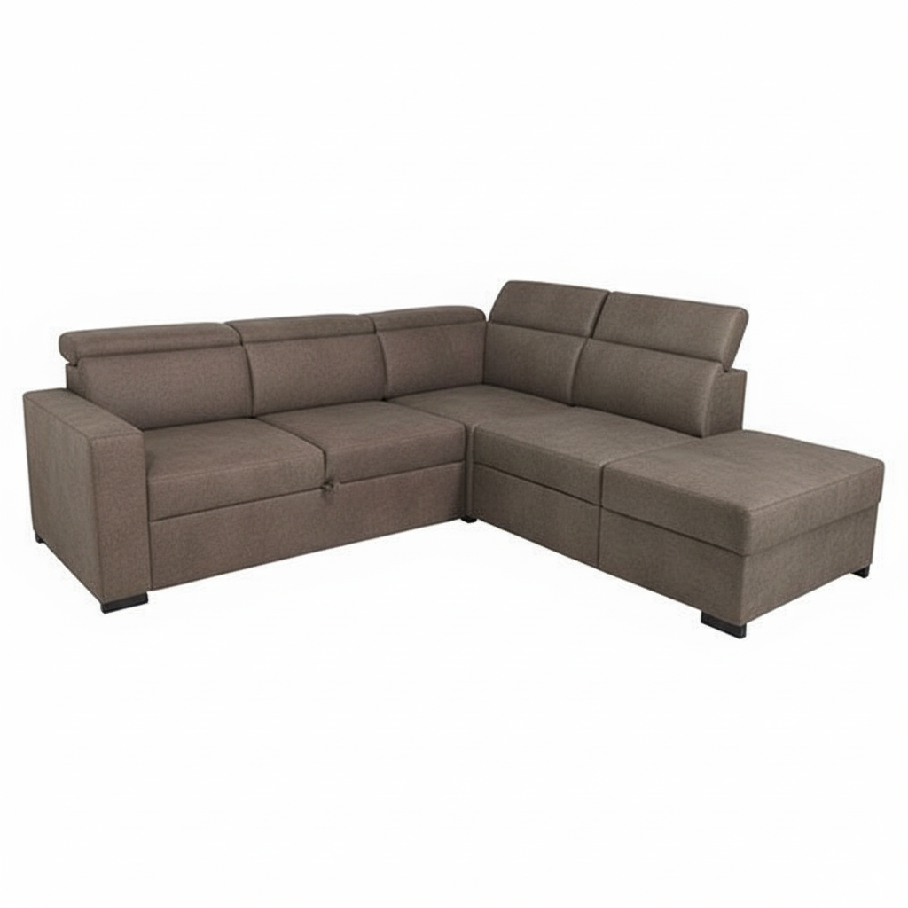 KERIEN, Grand canapé d'angle (droite) convertible Gigogne en tex