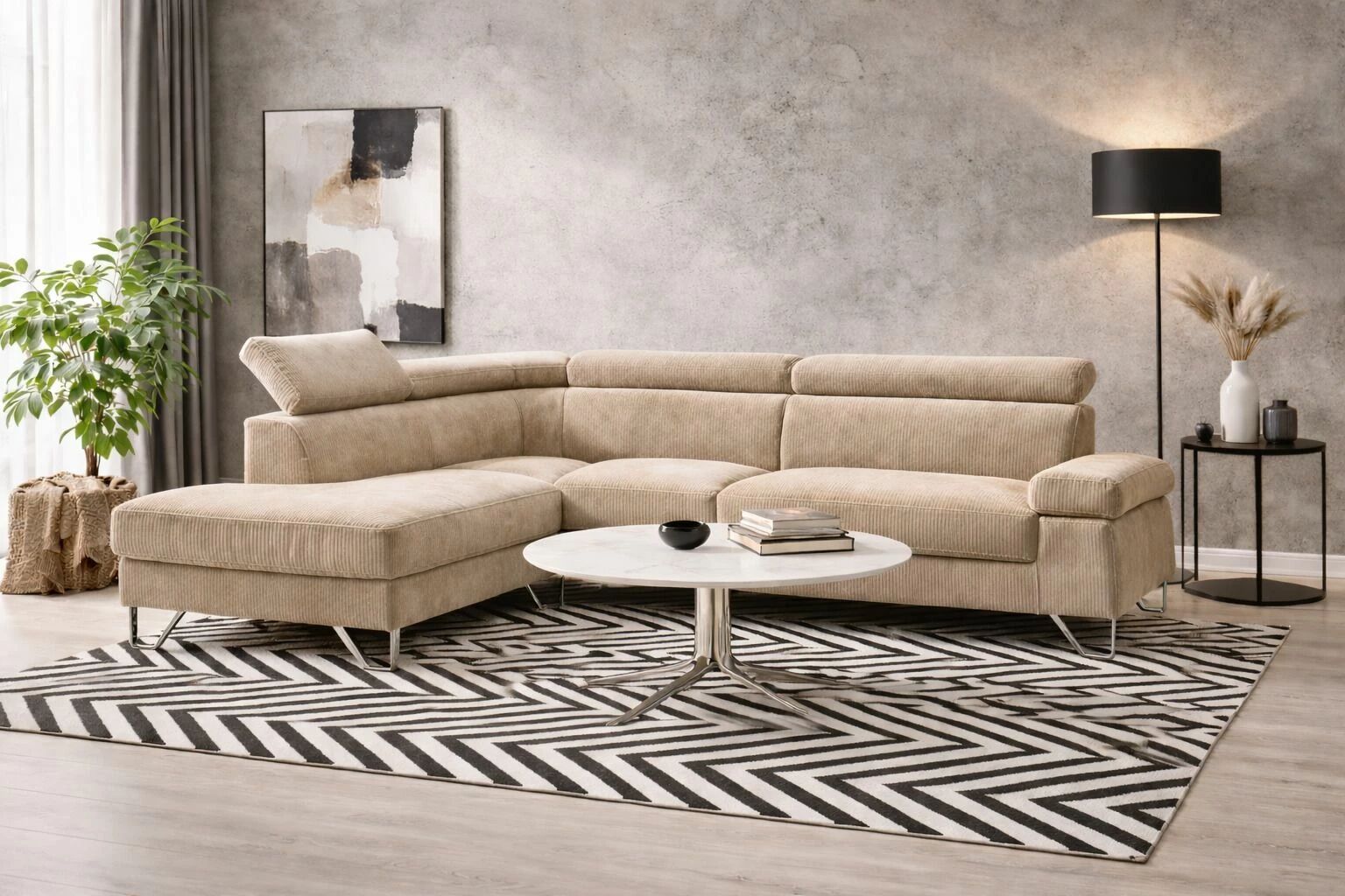 ALPHA, Canapé d'angle gauche fixe avec repose tête, non reversible