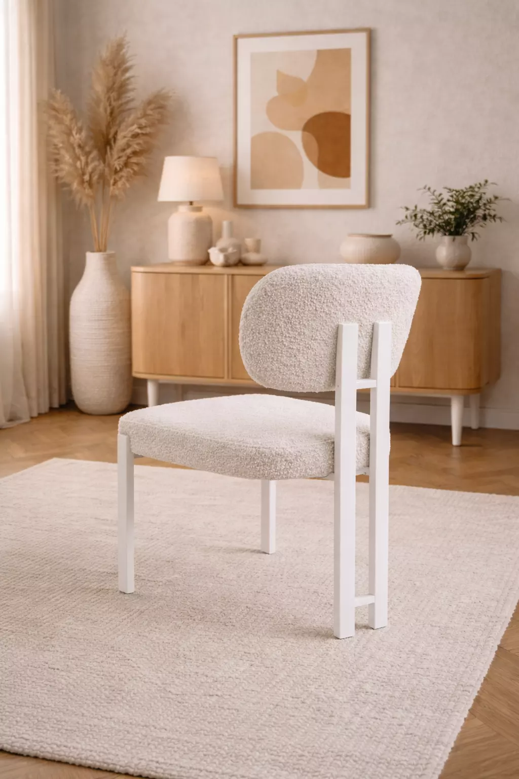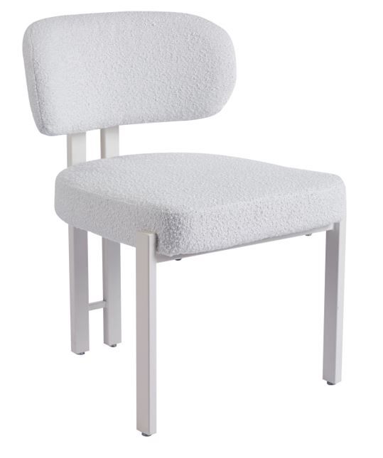 Chaise DRAGON Tissu bouclette BLANC CREME(CD422-1)+Pieds BLANC