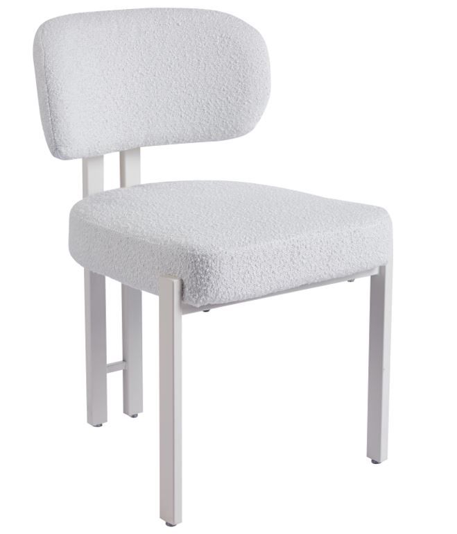 Chaise DRAGON Tissu bouclette BLANC CREME(CD422-1)+Pieds blanc MATTE