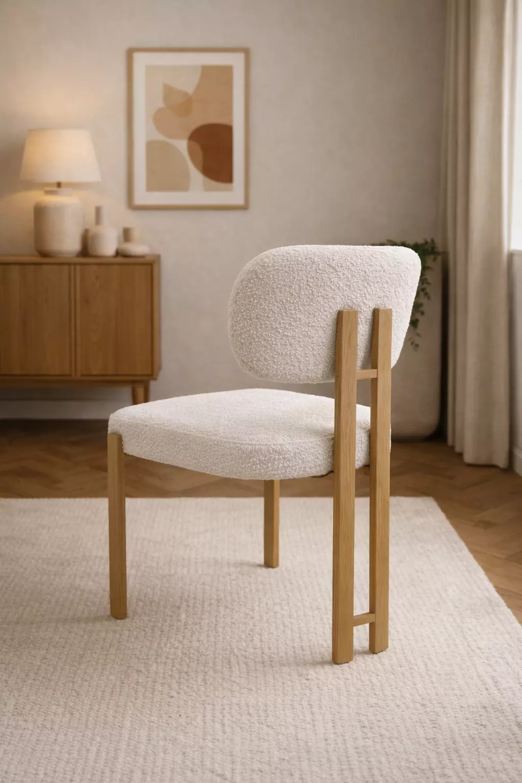 Chaise DRAGON Tissu bouclette BLANC CREME(CD422-1)+Pieds couleur bois PIN