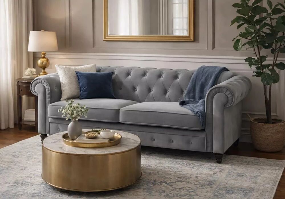 • Description du produit : CHESTERFIELD, Canapé 3 places en velours gris