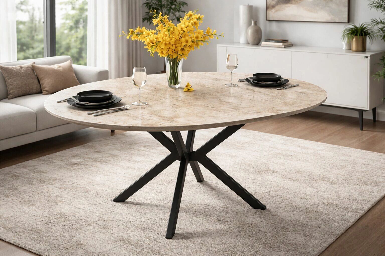 • Description du produit : DOBOK Table ronde pieds style colonne DIAM.126cm + 34cm Extension