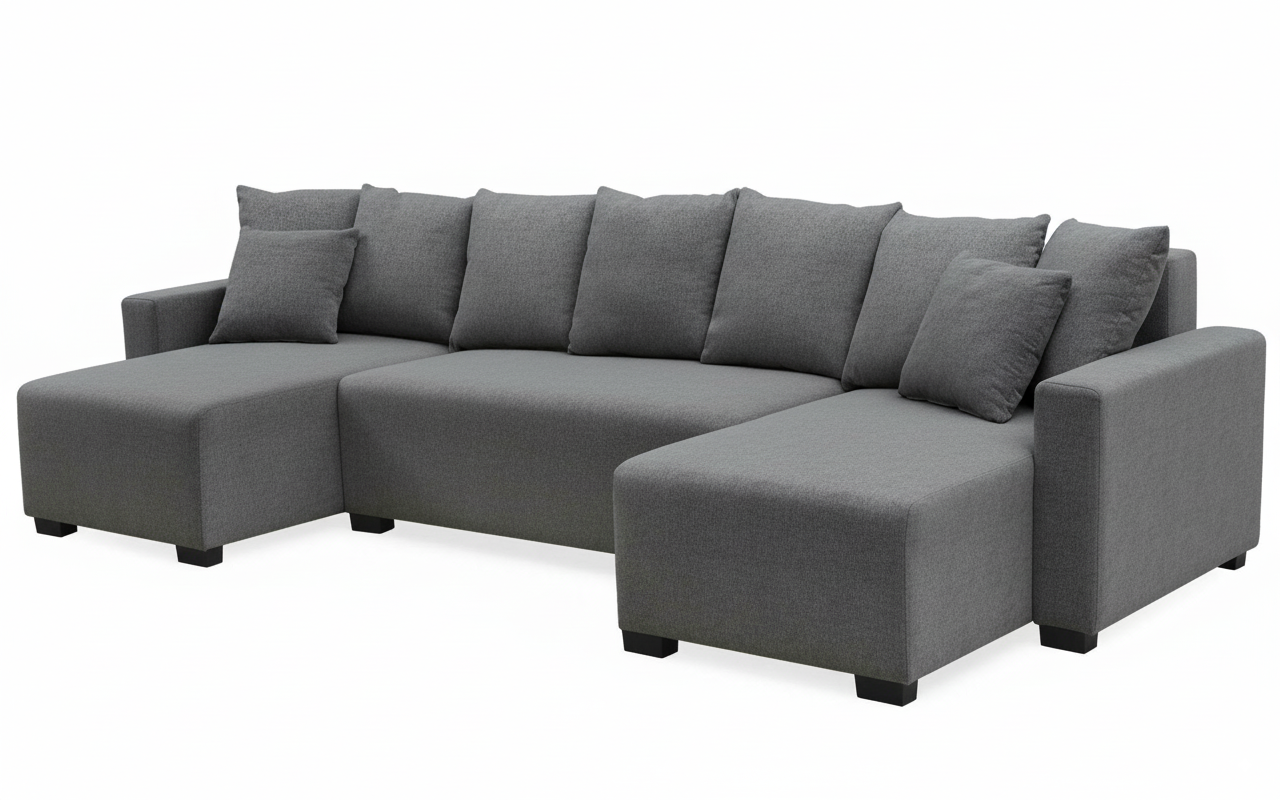 Accueil > Autres canapés convertibles > Fonctionnalités > Système gigogne > GRETA U, Canapé panoramique convertible gigogne 2 places + 2 place + angle pouf en velours GRIS