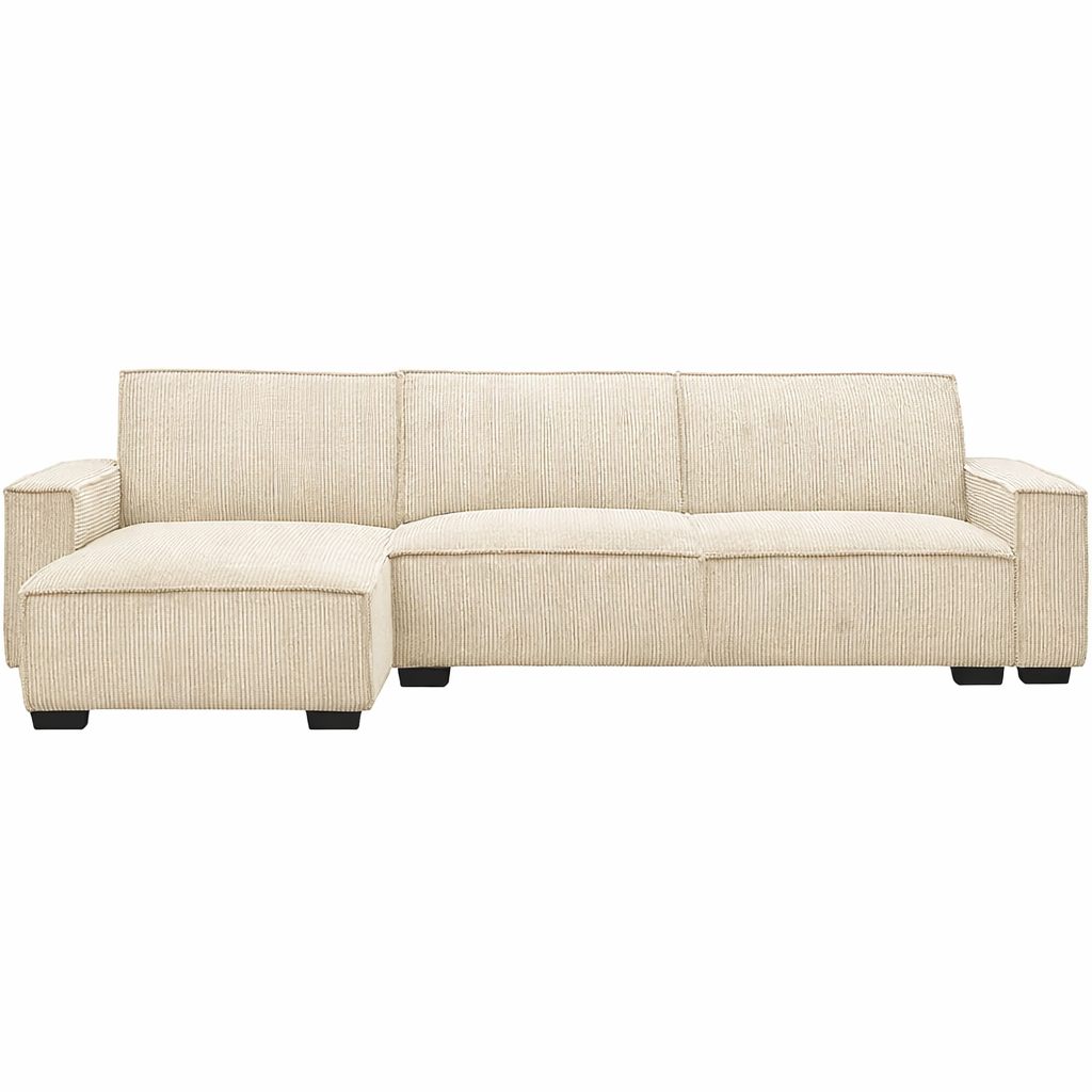 • Description du produit : LEON, Canapé d'angle convertible gigogne (mécanisme Clic Clac) avec méridienne en tissu velours cotelé. Non déhoussable