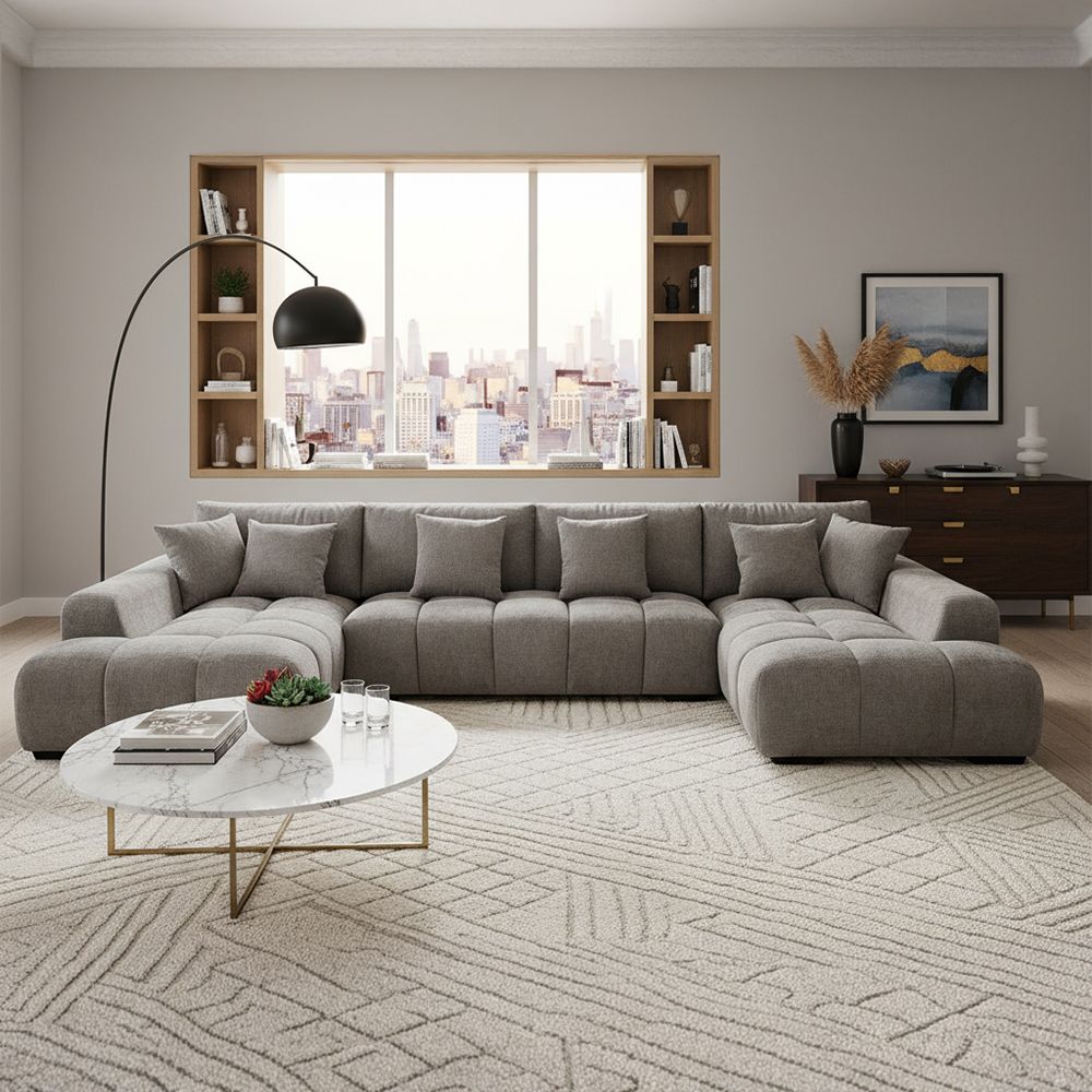 • Description du produit : Canapé panoramique FIXE symétrique « MONT BLANC» - Grand salon d 'angle en forme U design..