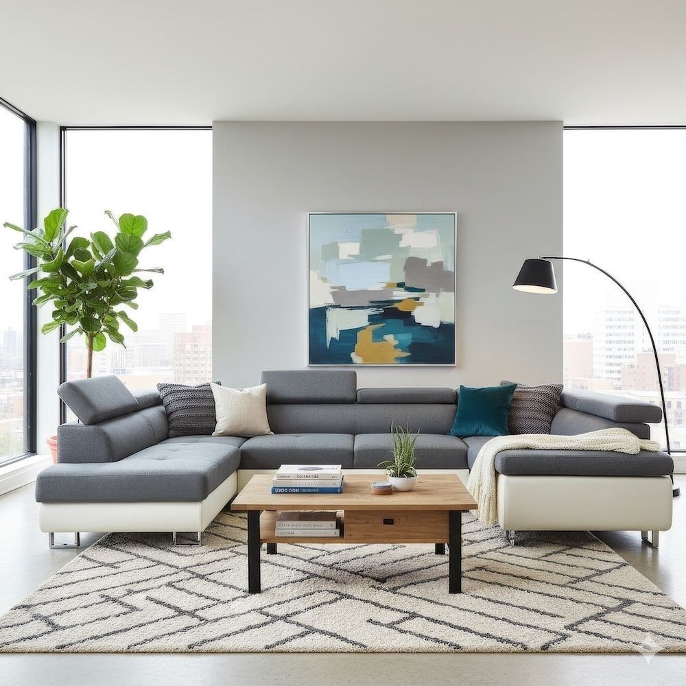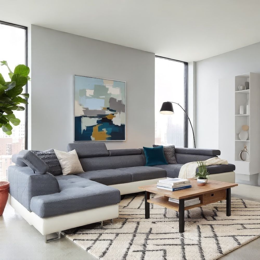 NAVY U, Canapé panoramique angle gauche convertible gigogne 2 places + 2 places +angle pouf enTissu tweed gris+ tour de caisse s