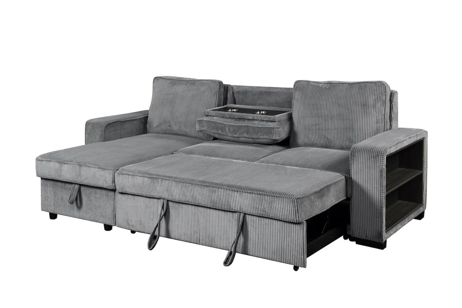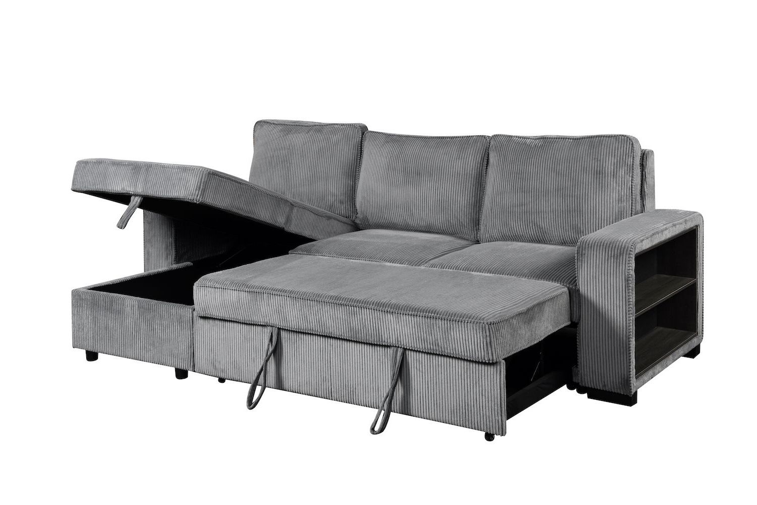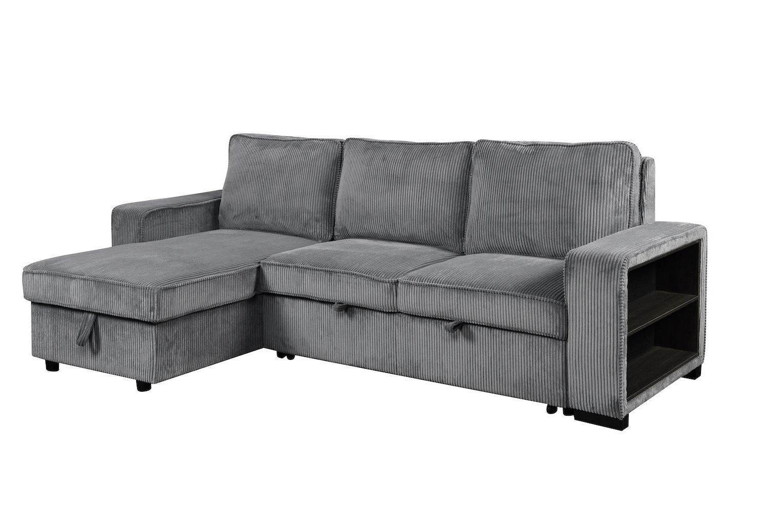 • Description du produit : Grand Angle gauche convertbible gigogne Non reversible 2 places + angle+ pouf coffre NERO+CL en velours COTELE. Non déhoussable