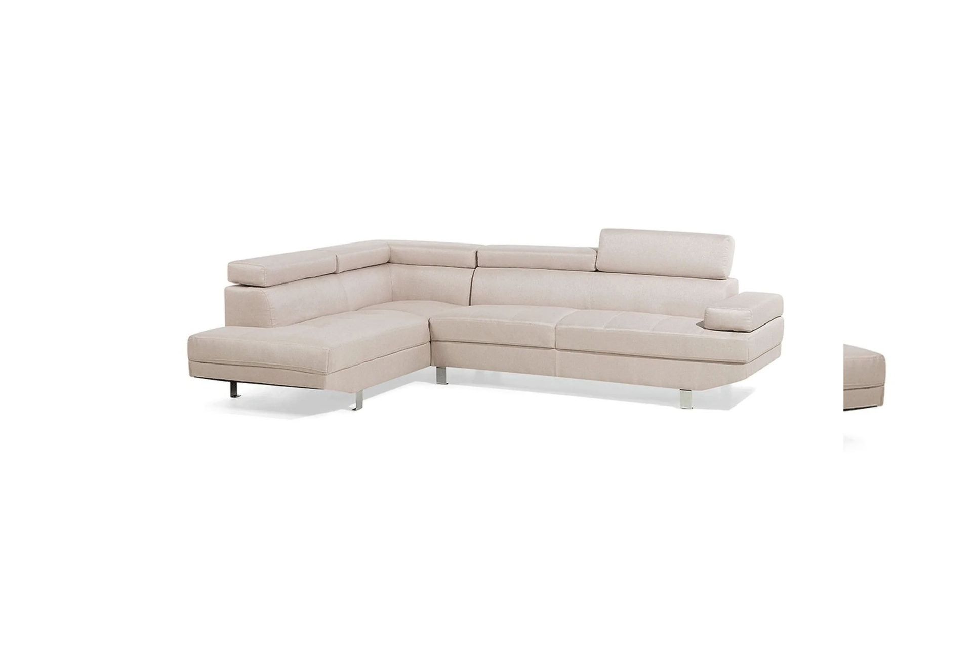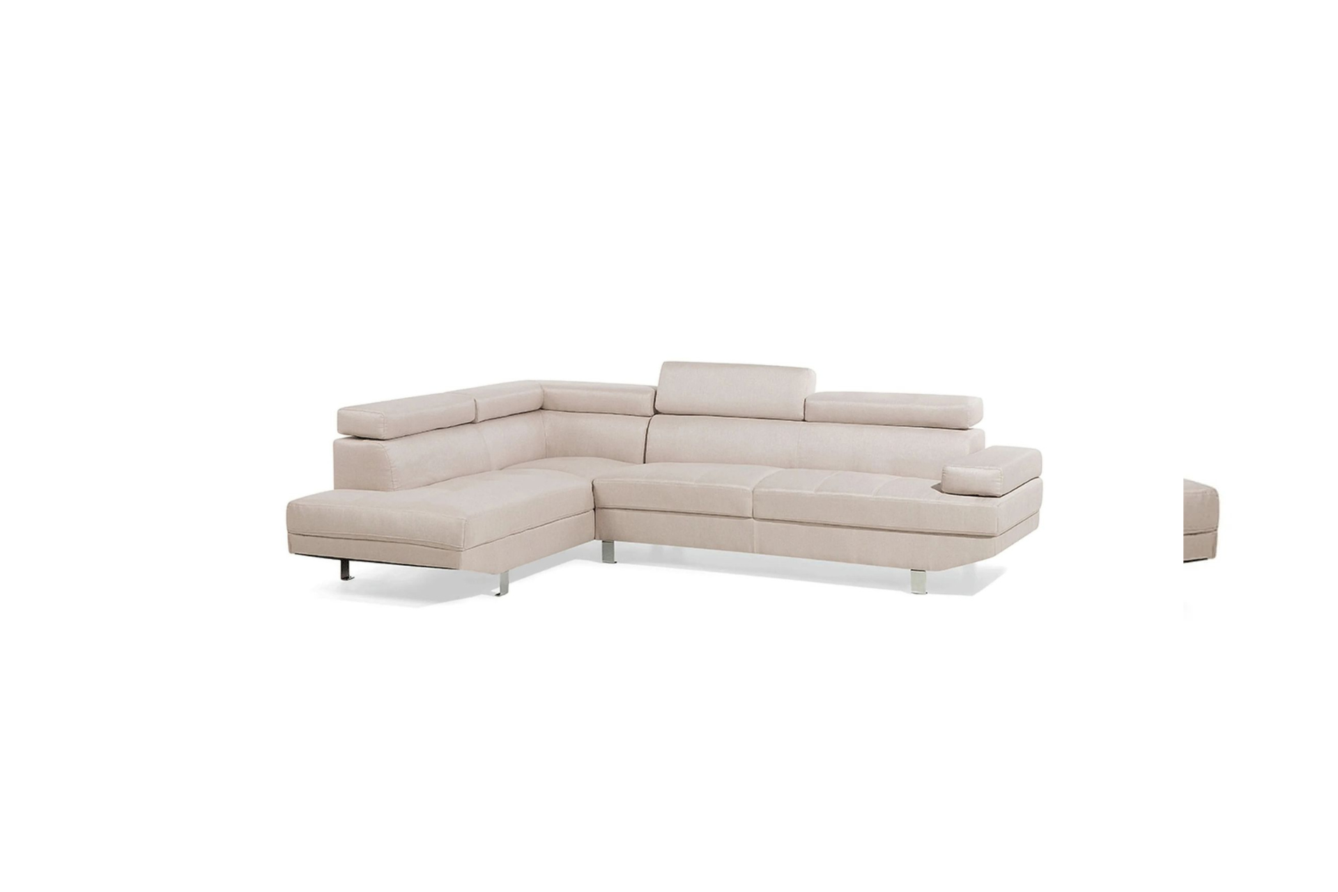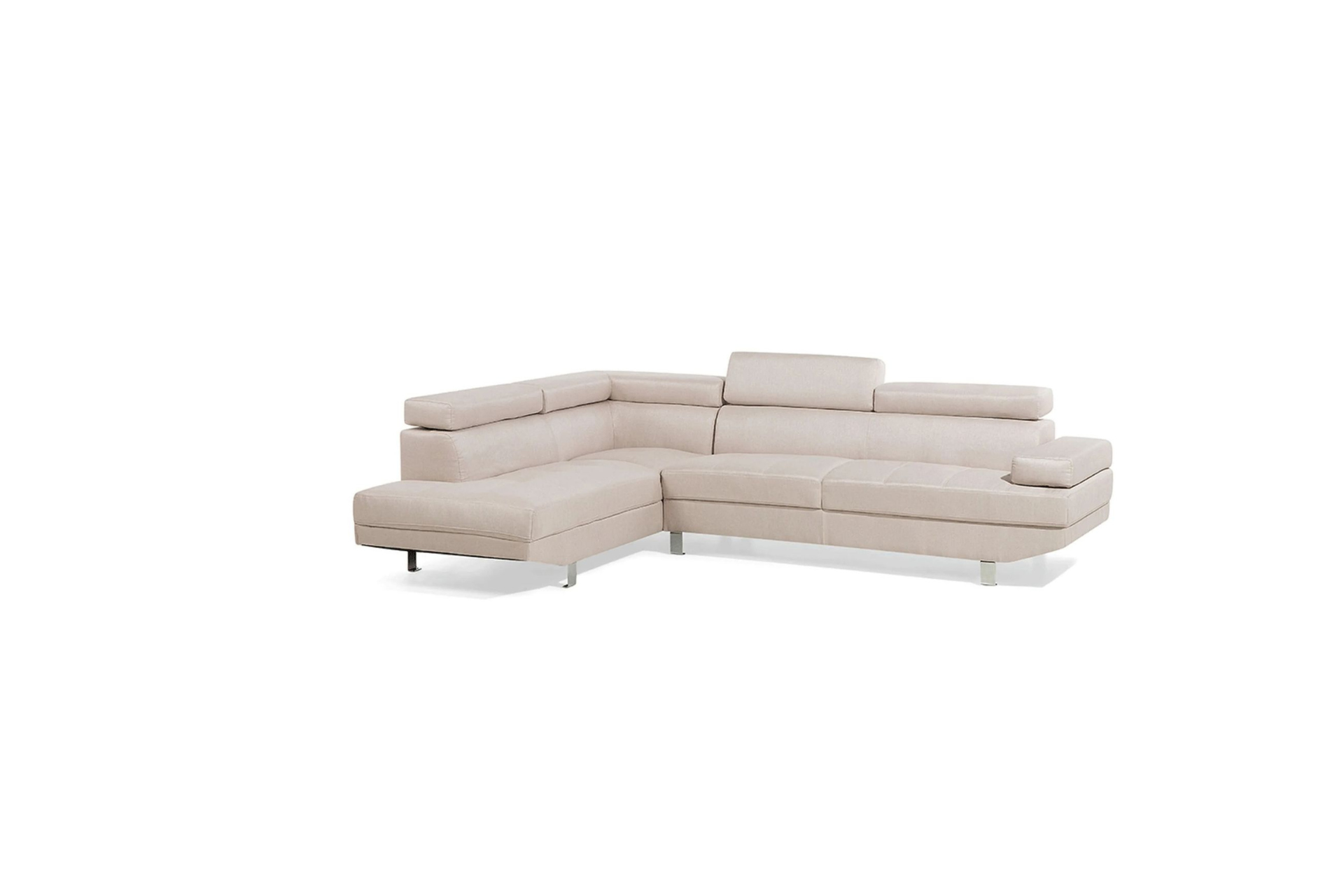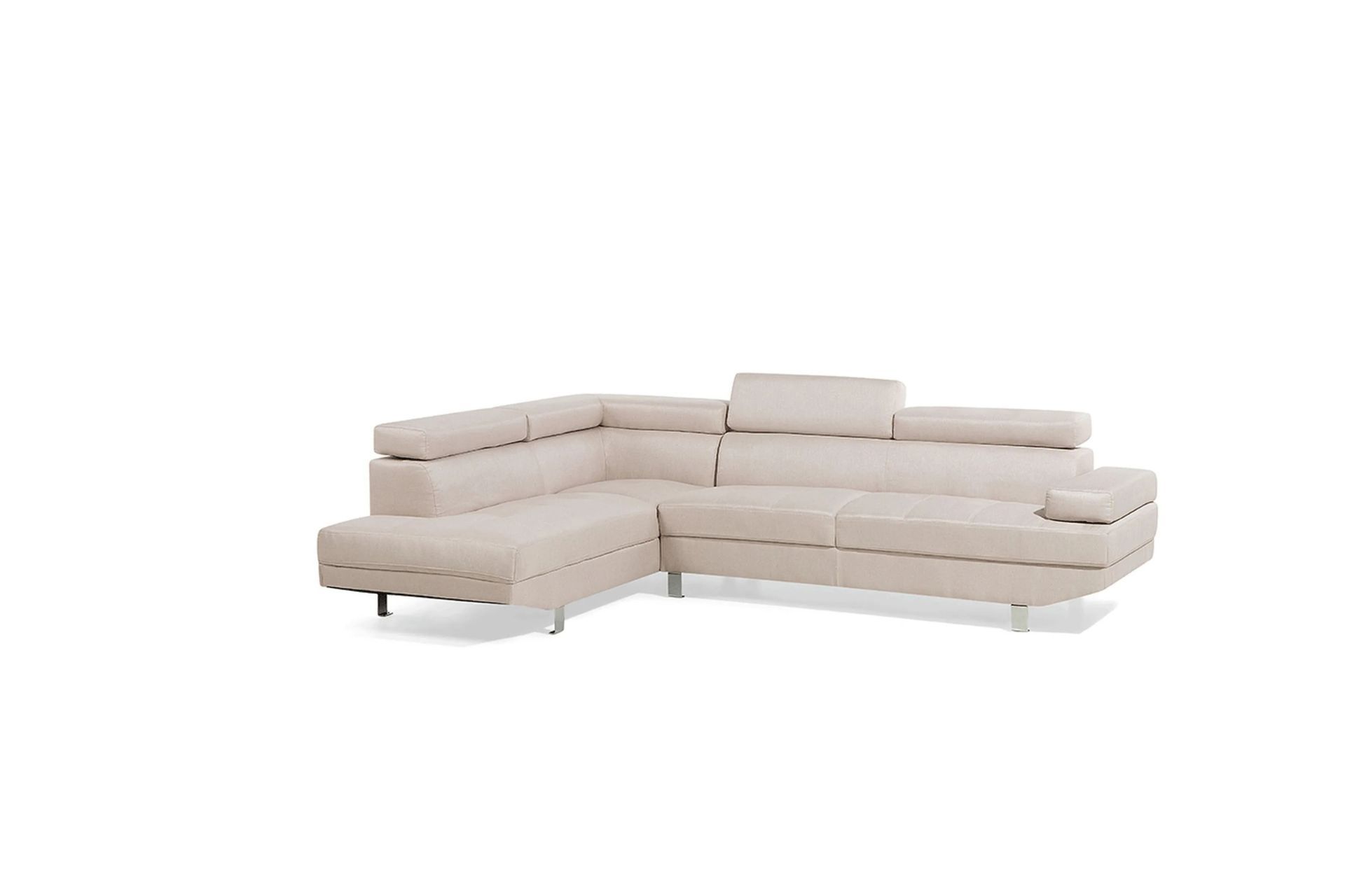 NEWTOWN, CANAPÉ D'ANGLE FIXE, AVEC REPOSE-TÊTES EN SIMILI GRIS CLAIR, ANGLE GAUCHE +USB