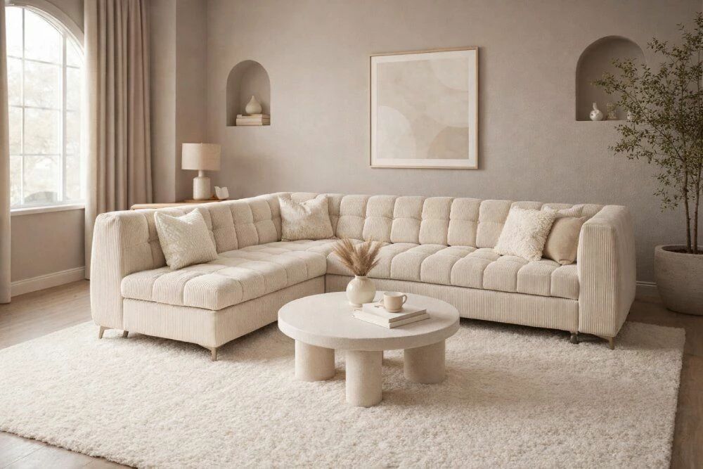 ODEON, Canapé d'angle méridienne réversible convertible gigogne avec coffre de rangement en velours cotelé