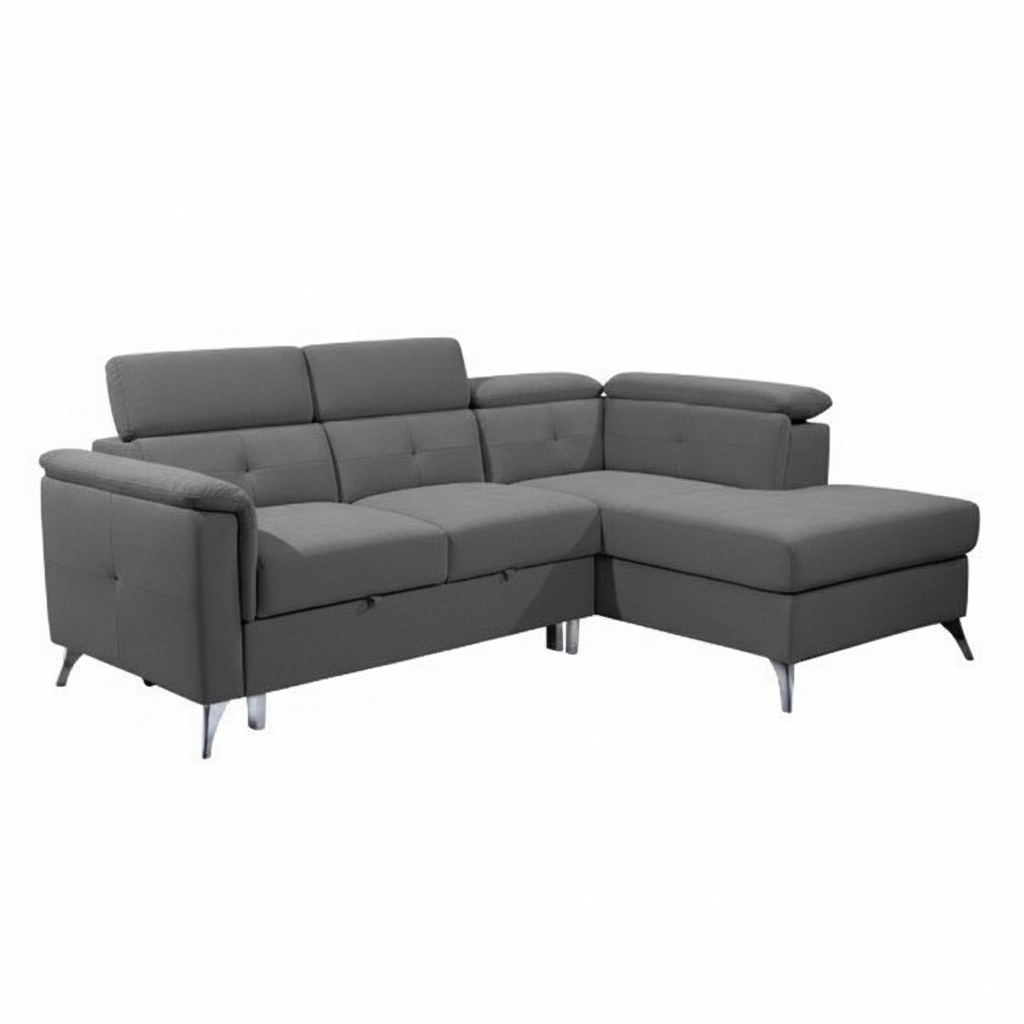 Accueil > Autres canapés convertibles > Fonctionnalités > Système gigogne > SKANDI, canapé d'angle droite, convertible gigogne en tissu tex