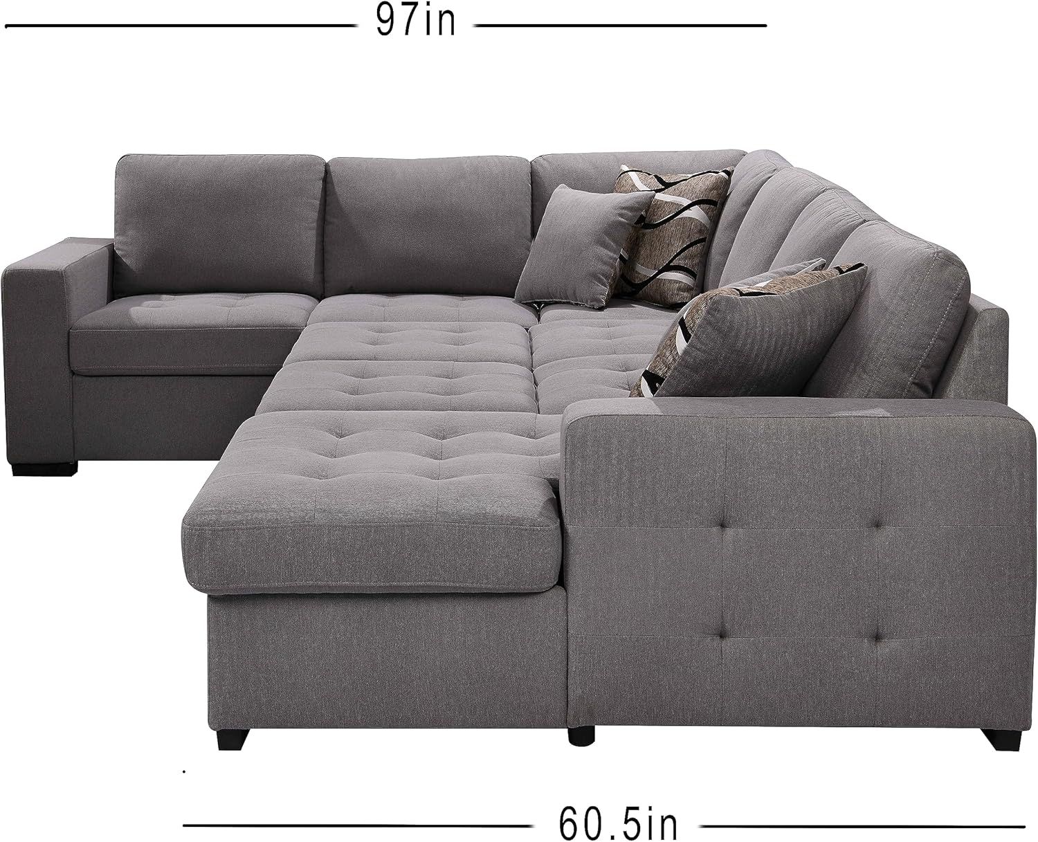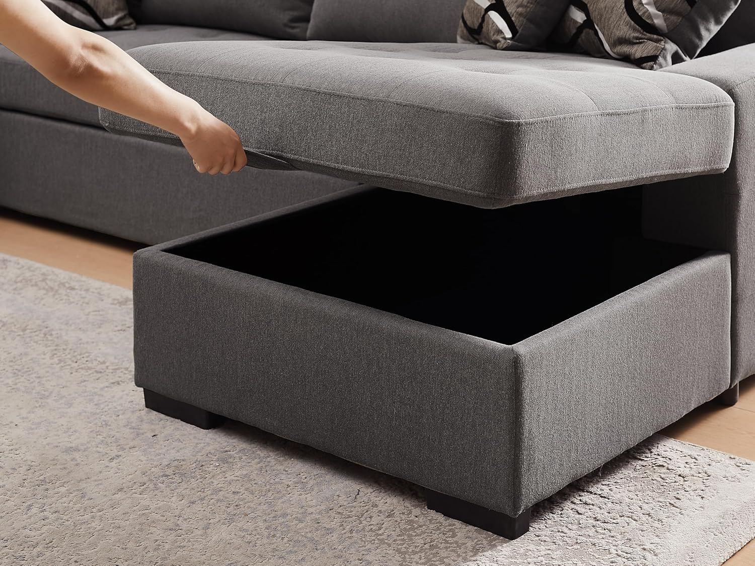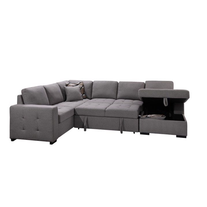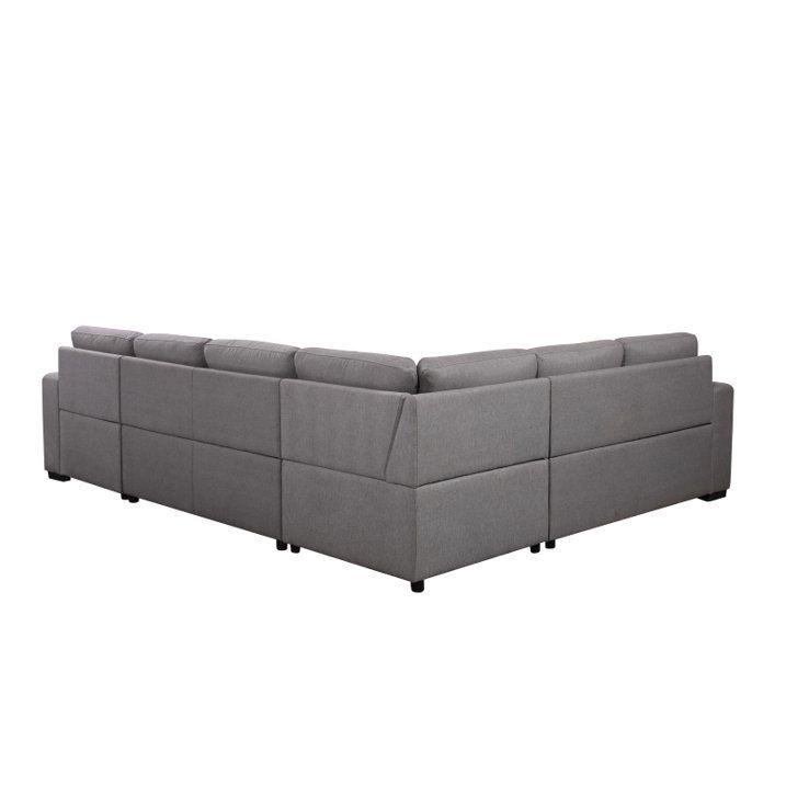 ZIPER-U, Grand angle gauche, convertible Gigogne avec méridienne à droite-TISSU GRIS CLAIR