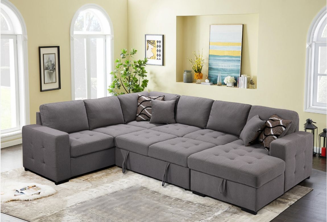 Accueil > Canapé convertible rapid'lit > Type de canapé > Canapé d'angle > ZIPER-U, Grand angle gauche, convertible Gigogne avec méridienne à droite-TISSU GRIS CLAIR
