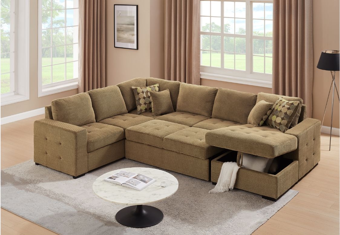Accueil > Canapé convertible rapid'lit > Type de canapé > Canapé d'angle > ZIPER-U, Grand angle gauche, convertible Gigogne avec méridienne à droite-TISSU TAUPE